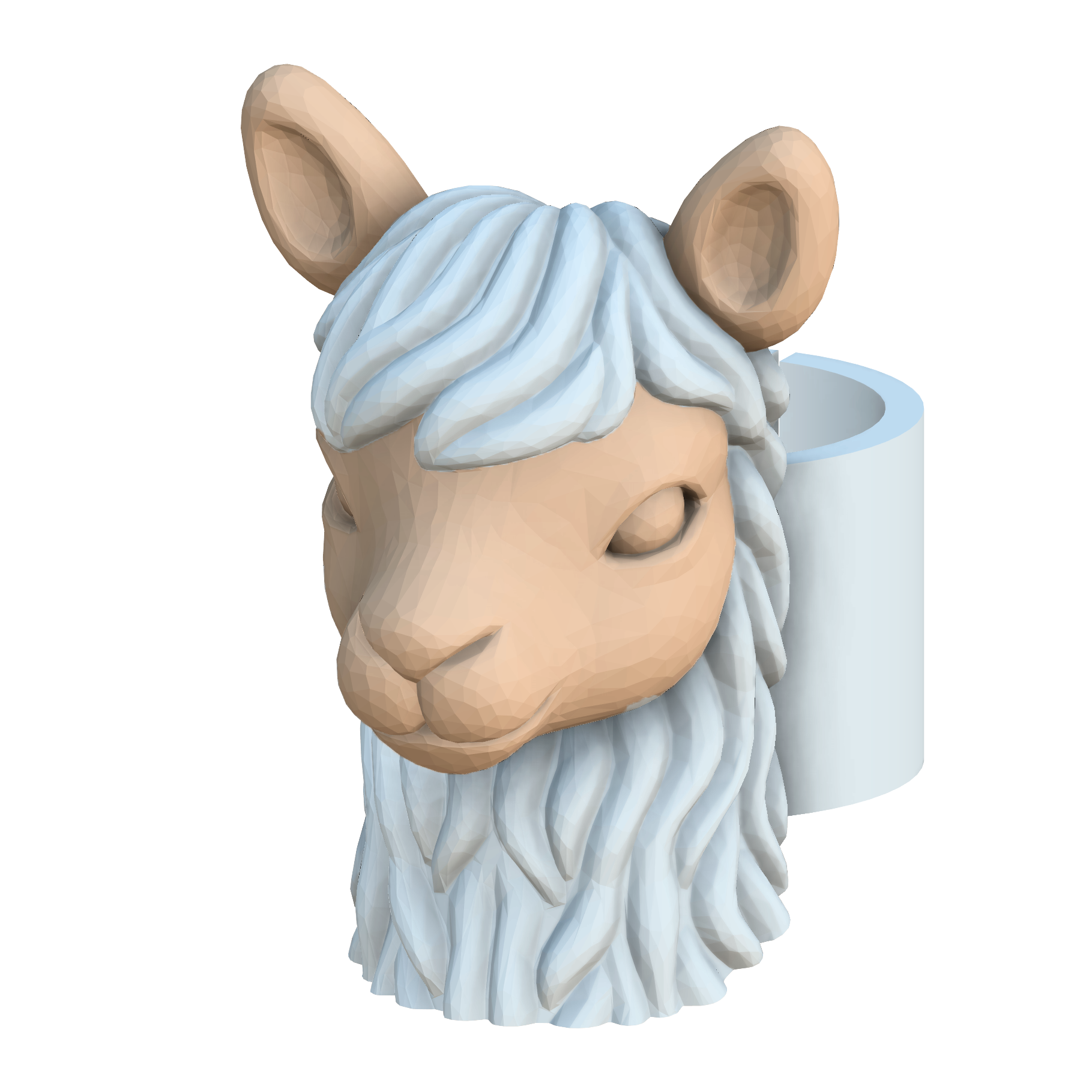 • Decoração em forma de cabeça de lhama branca e castanha com base cilíndrica