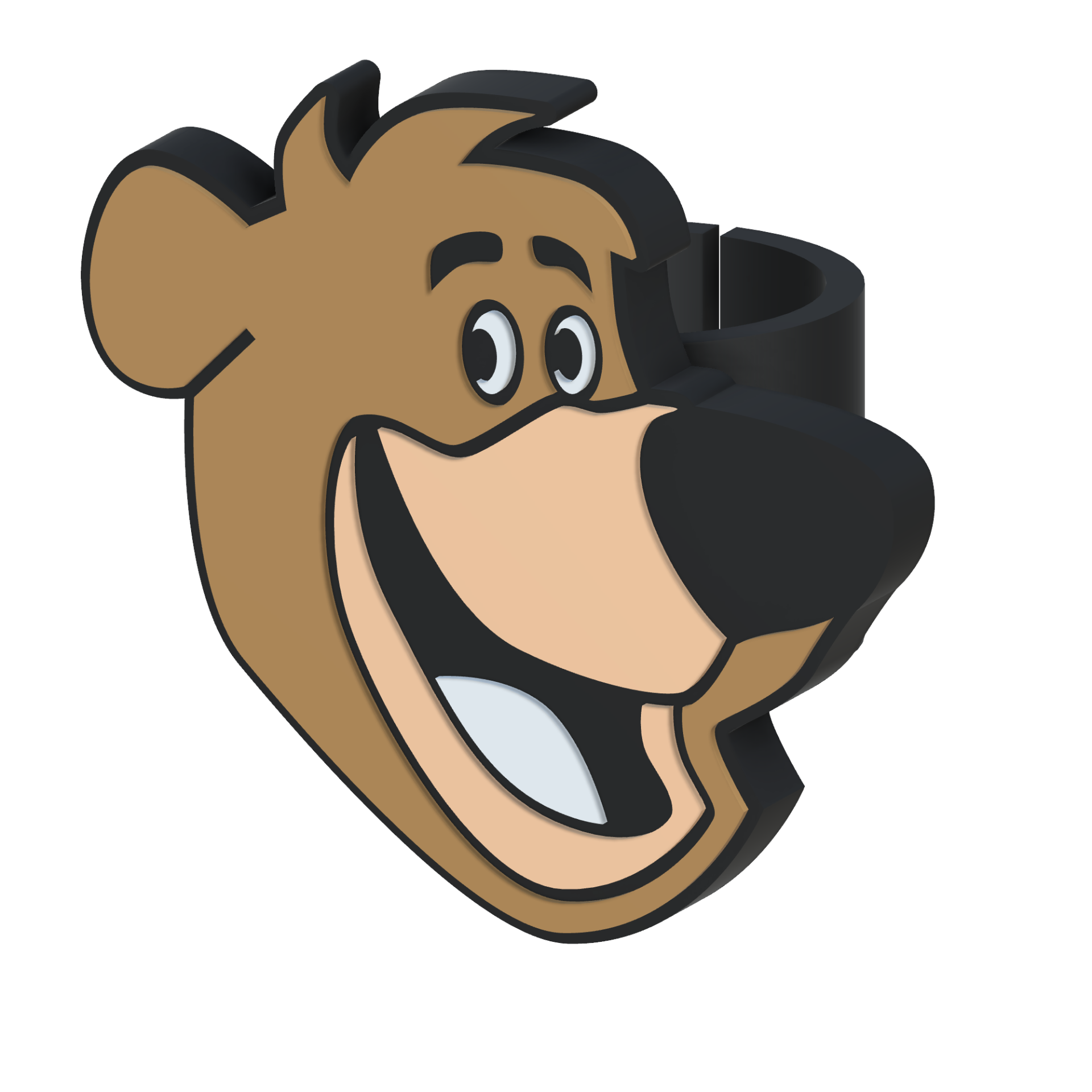 Anel para copo com cabeça de urso sorridente em castanho e preto