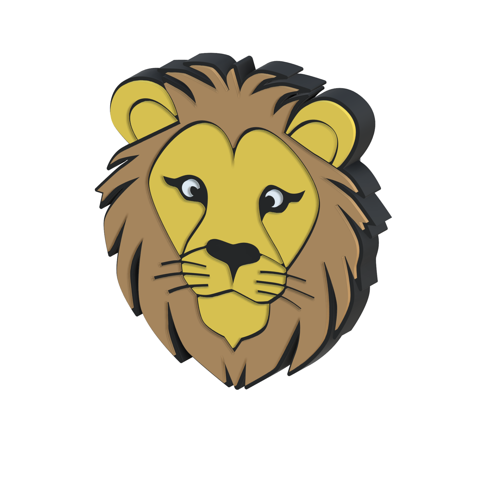 Ilustração da cabeça de um leão amarelo e castanho com olhos expressivos.