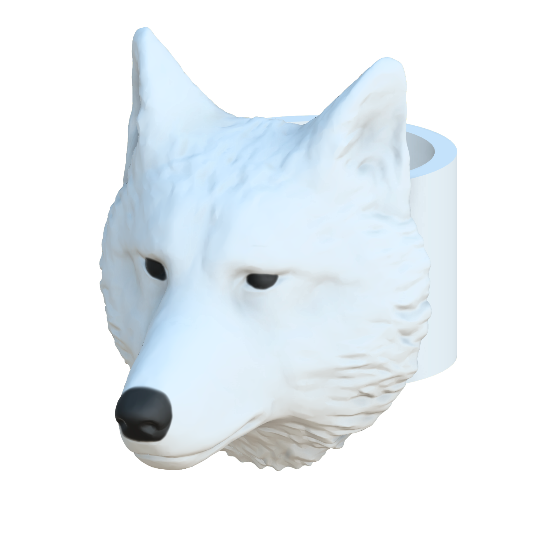 • Suporte de fita adesiva em formato de cabeça de lobo branca.