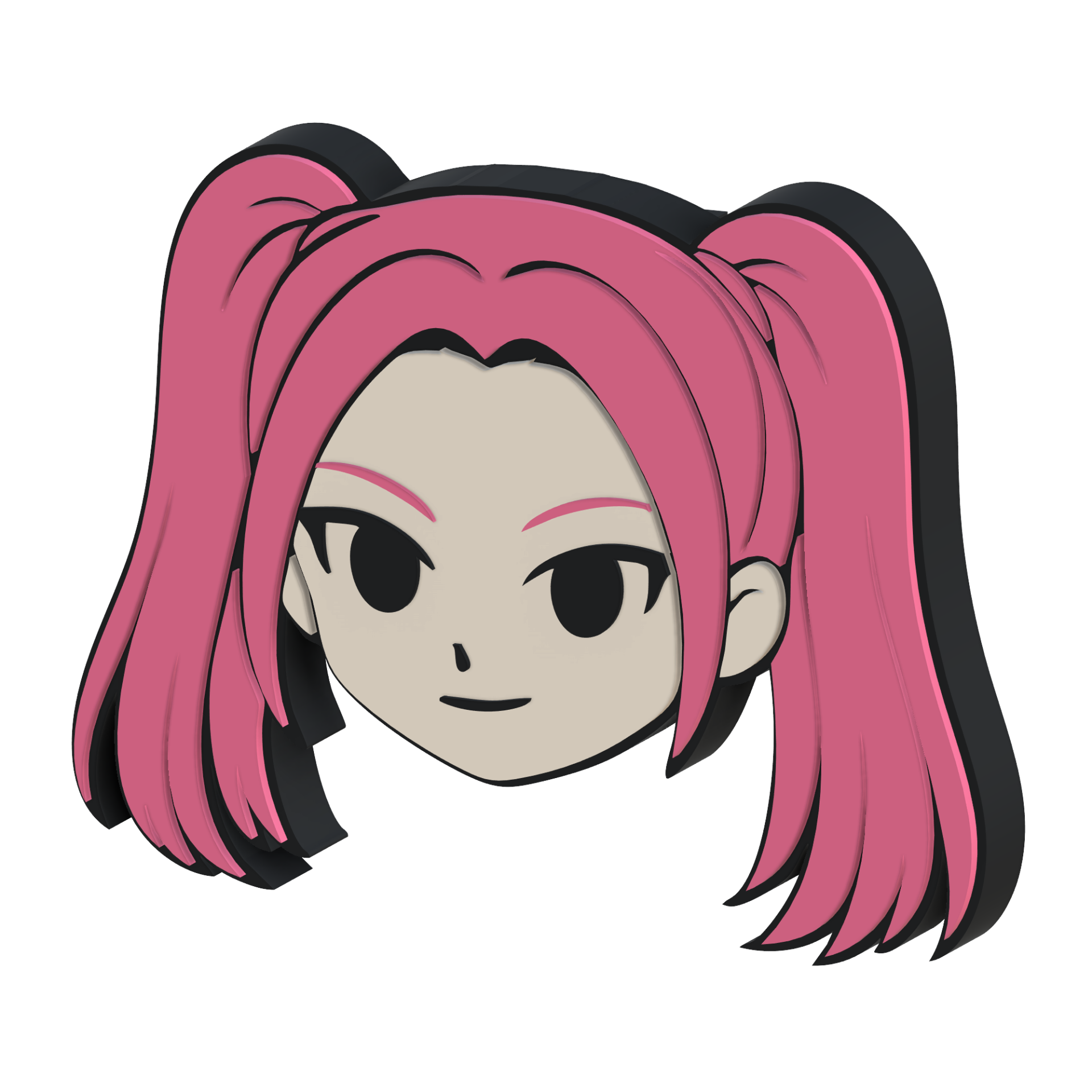 • Cabeça estilizada de boneco com cabelo cor-de-rosa e dois rabo de cavalo