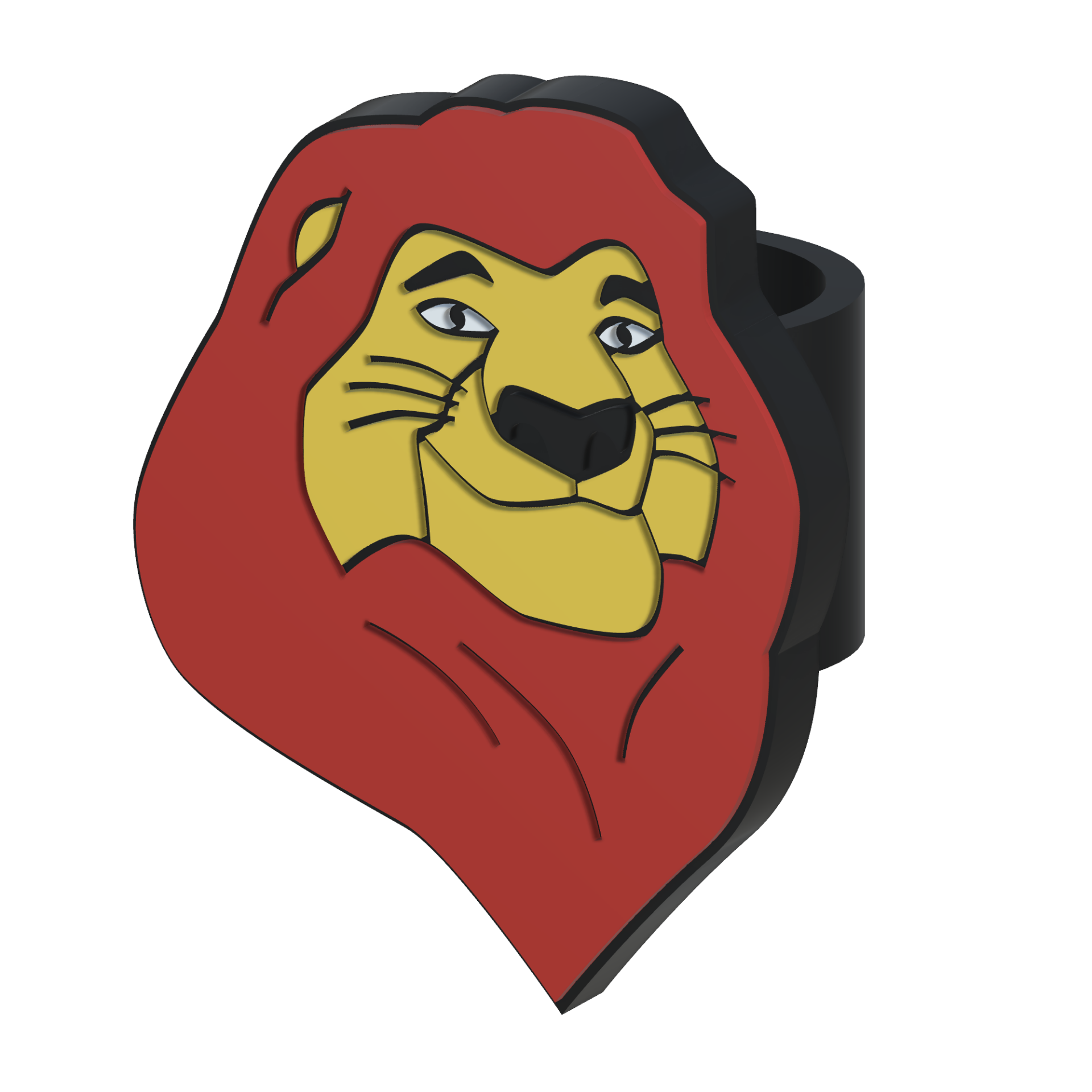 • Anel preto com figura de cabeça de leão em amarelo e vermelho