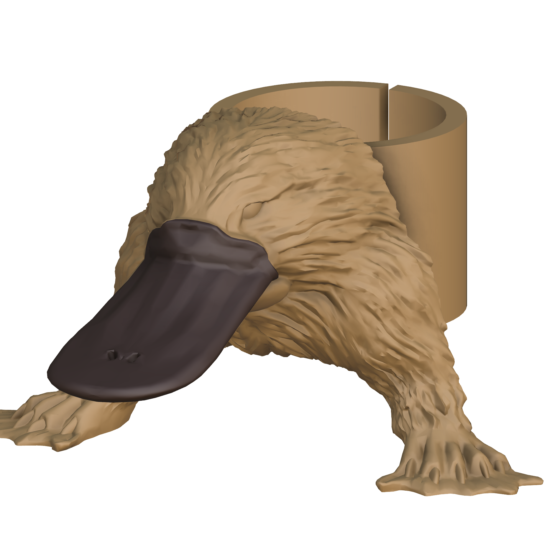 • Figura decorativa de ornitorrinco em resina com base circular castanha