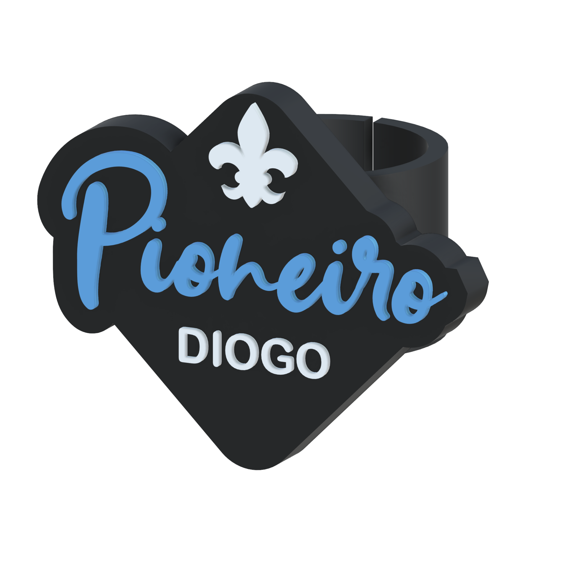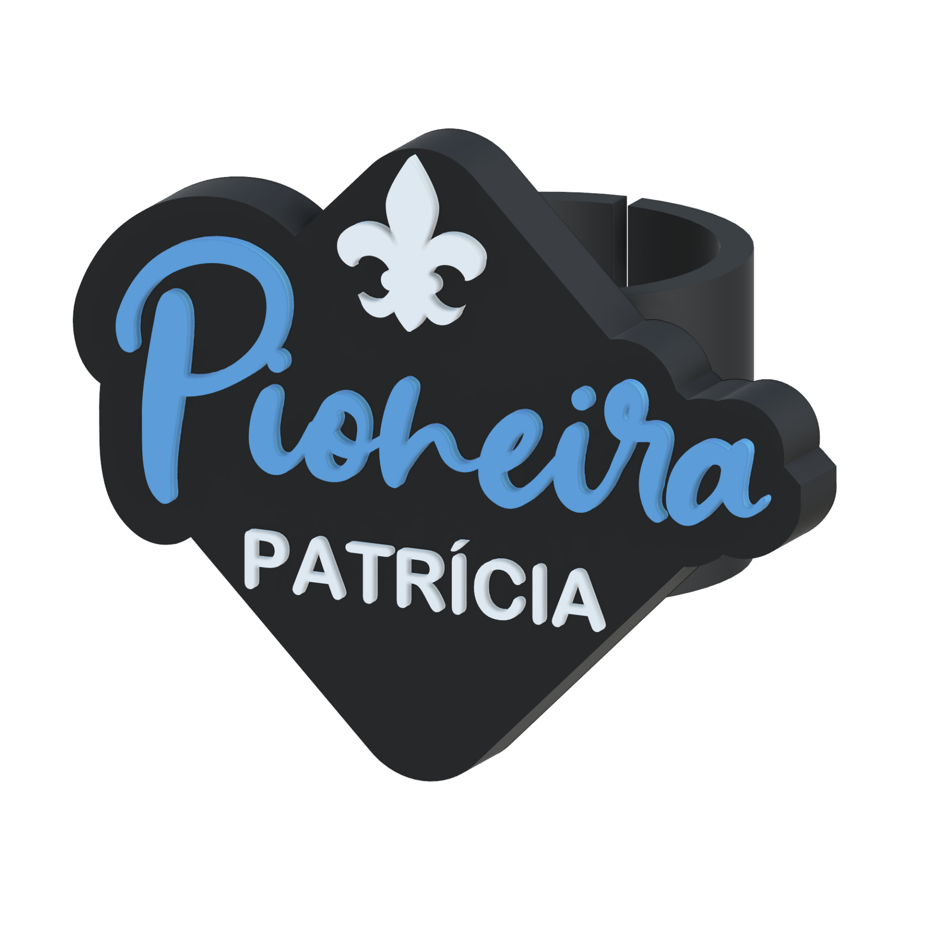 Esta anilha é personalizada com o nome do pioneiro, tornando-a única e especial no uniforme.