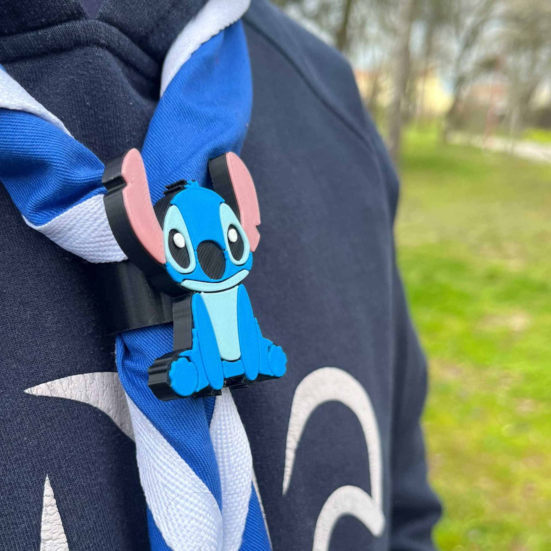 • Prendador para lenço do personagem Stitch azul e preto com detalhes em rosa e branco