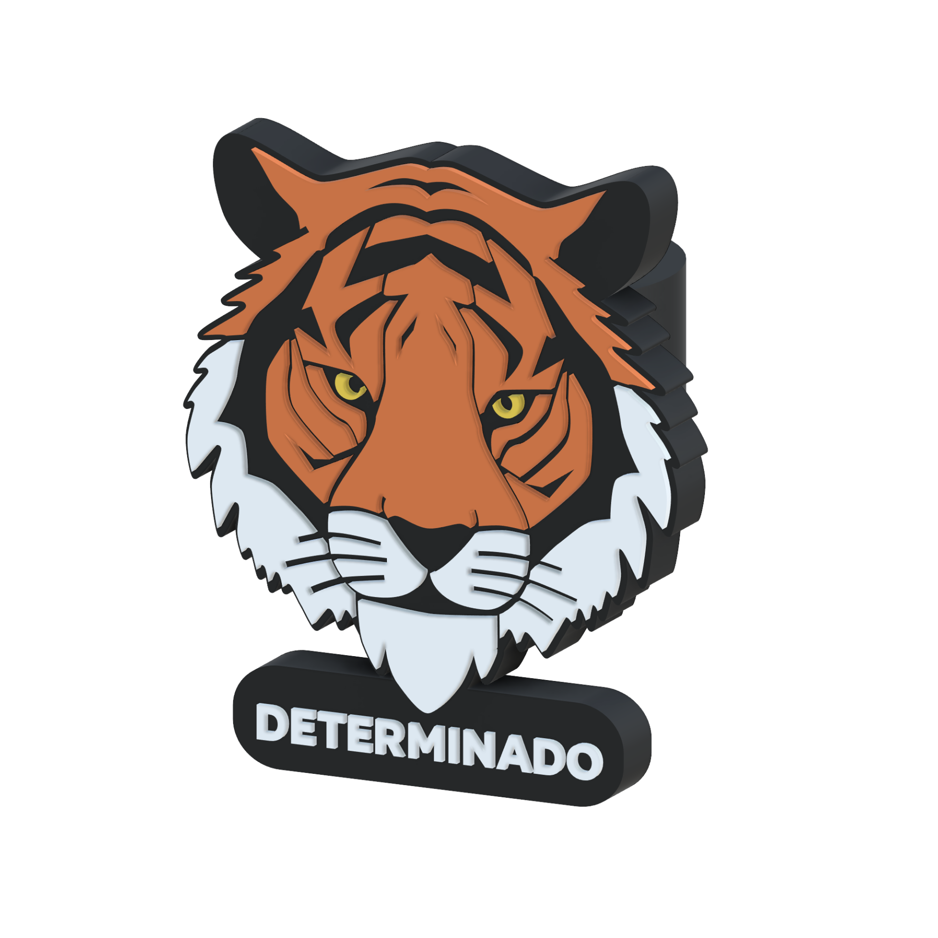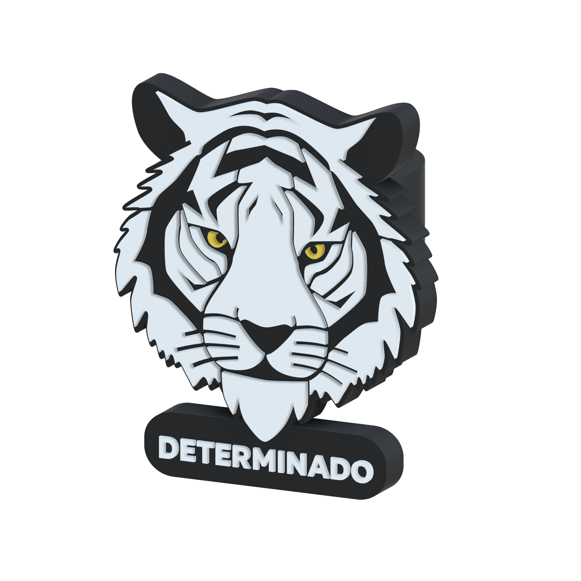 • Figura de cabeça de tigre branco com suporte e texto DETERMINADO