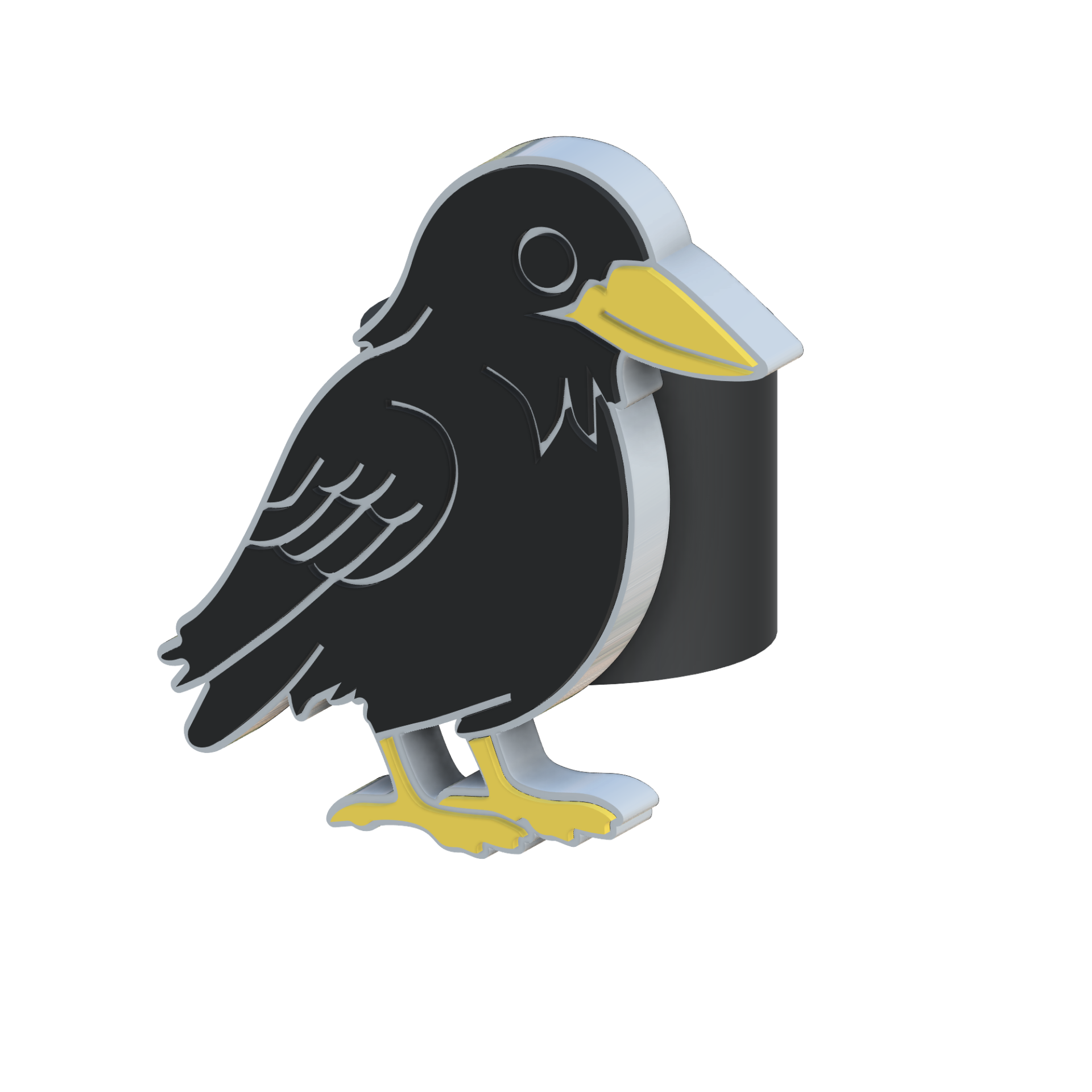 • Porta-lápis em forma de pássaro preto com bico e pés amarelos
