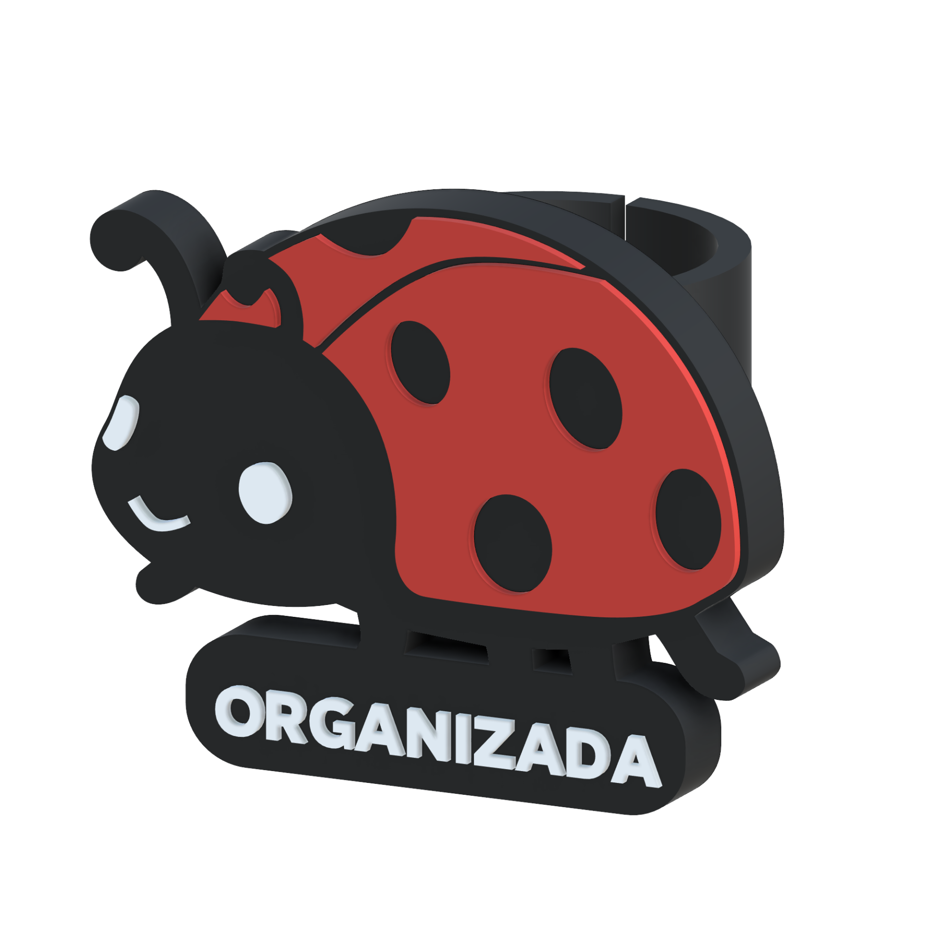 • Argola preta e vermelha com pintas, com a palavra ORGANIZADA